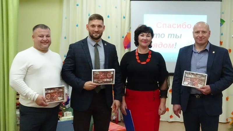 Недавно членов совета Алексея Буторина и Александра Боровикова пригласили в детский сад «Бусинка» в селе Дальнем. Они вошли в состав жюри конкурса видеороликов «Наш папа – самый лучший», посвященного Дню отца в России. Вместе с руководителем областного отделения Всероссийской общественной организации «Боевое братство» Сергеем Цыбаковым они вручили грамоты победителям и охотно приняли участие в веселых эстафетах.