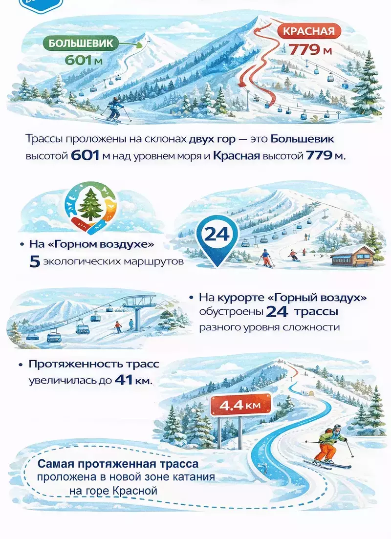 «Горный воздух» занимает особое место в моей жизни. Мои окна выходят прямо на этот комплекс, и каждый день я могу любоваться его видами. Я снимаю видео и веду прямые трансляции в своем канале в TikTok, где у меня уже более 730 тысяч подписчиков. Когда я показываю потрясающие виды «Горного воздуха», особенно в вечернее время, когда комплекс красиво подсвечивается, зрители со всего мира восхищаются красотой и мечтают оказаться здесь. Многие пишут, что хотели бы жить в квартире с таким видом или хотя бы приехать сюда отдохнуть. И действительно, вид из моих окон никогда не надоедает — он всегда разный.Зимой «Горный воздух» особенно привлекателен для горнолыжников и сноубордистов. Здесь найдется трасса для каждого — и для новичков, и для опытных райдеров.Вспоминаю советское время, когда на канатной дороге были простые лавки, а возле трамплинов собиралось до тысячи человек, чтобы посмотреть на соревнования. Те времена остались в истории, а сейчас «Горный воздух» переживает новый этап развития, достигает новых высот и радует своими успехами.Сам я начал кататься на сноуборде не так давно, но уже понимаю, насколько это место популярно среди любителей зимних видов спорта. Жители Дальнего Востока хорошо знают «Горный воздух» и каждый сезон приезжают сюда, чтобы насладиться катанием и полюбоваться видами вечернего города.Недавно я открыл для себя еще одну сторону этого комплекса — утренние виды на горы. В ясную погоду на рассвете горы окрашиваются в розовые тона, и это невероятно красиво. Я живу недалеко, поэтому могу в любой момент приехать сюда и встретить рассвет, любуясь этими потрясающими пейзажами. Фотографии с такими видами вы можете увидеть в моем Telegram-канале — я недавно обновил коллекцию снимков.