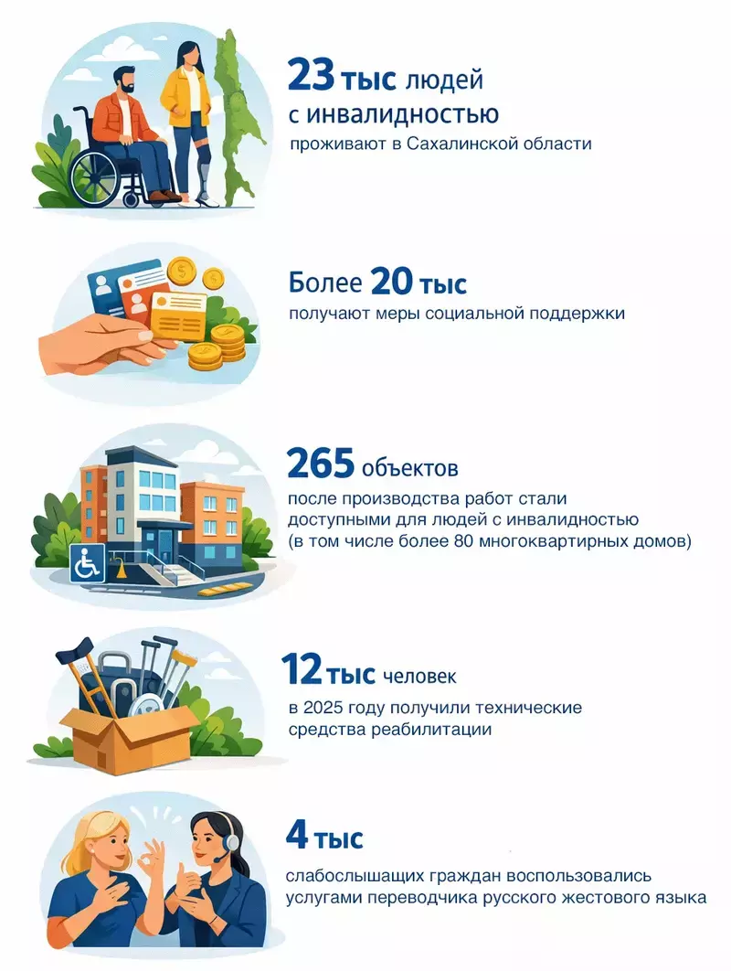 По итогам 2025 года Сахалинская область заняла1 место в России по качеству жизни людей с инвалидностью.