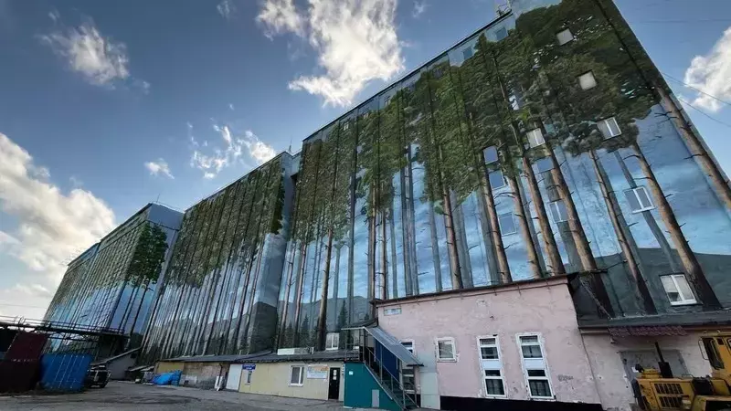 Дарья Старченко отметила, что одним из самых значимых проектов стал масштабный мурал «Лес», украсивший здания элеватора в Южно-Сахалинске.