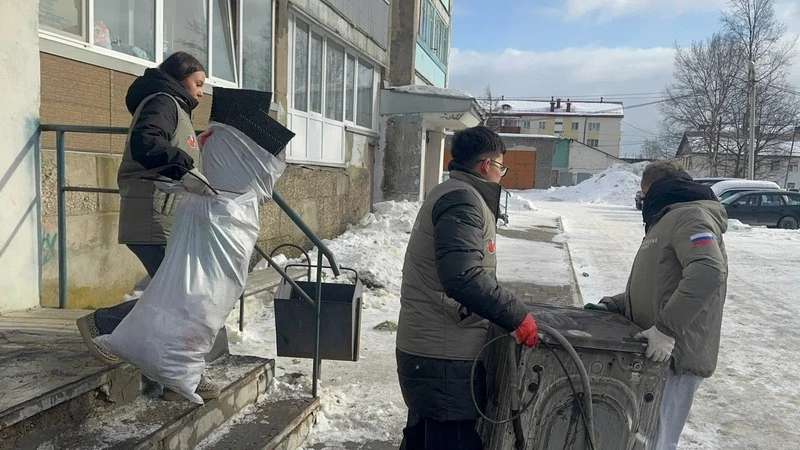 Волонтёры вынесли на улицу сгоревшую мебель и бытовую технику, демонтировали плинтусы, дверные проёмы, люстры, раковину и душевую кабину, временно закрыли окна, подготовили мусор к утилизации.