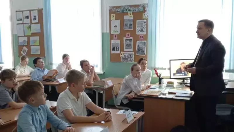 Урок краеведения в конце января организовали в средней общеобразовательной школе №13 Южно-Сахалинска для учеников 5-Г класса. По приглашению самих школьников к ним пришел сахалинский поэт, прозаик и драматург, председатель Сахалинского регионального отделения Союза писателей России Владимир Семенчик.
